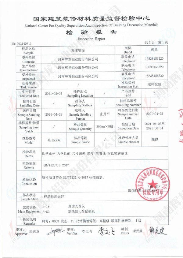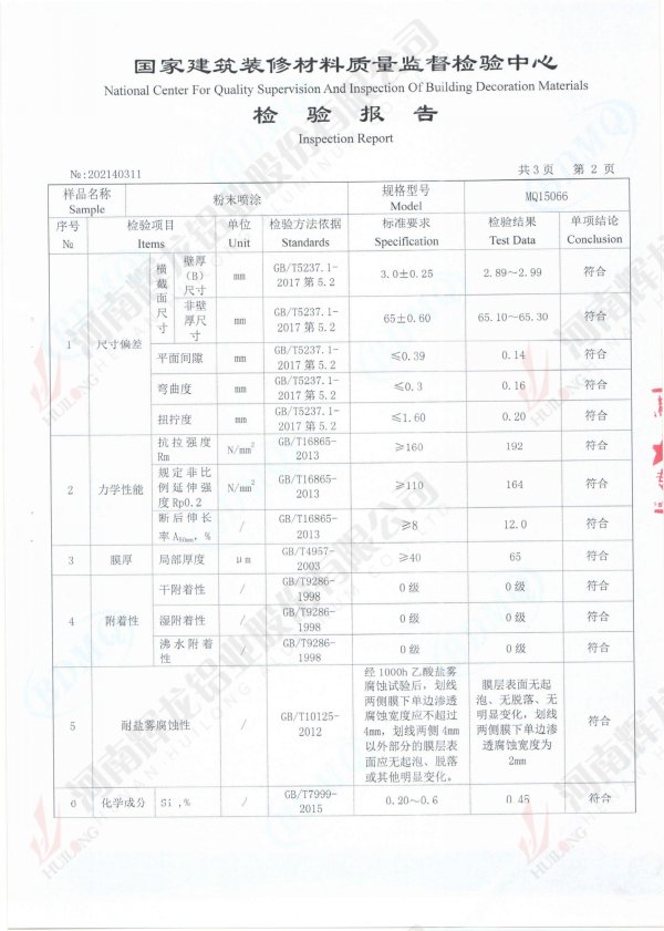 幕墙普铝材料检验报告
